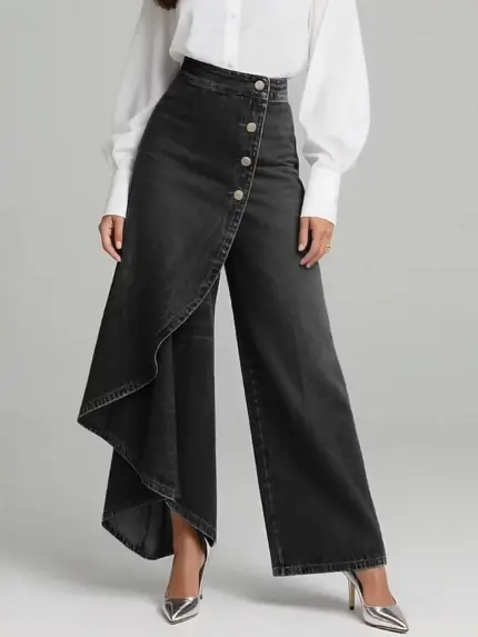 Selling Points 1. Pants Type: Wide Leg 2. Waistline: Mid Waist 3. Fit Type: Loose Fit Specifications Gender: Women’sPants Type: Wide LegStyle: Basic, VacationOccasion: Vacation, Street, Holiday, CausalFabric: DenimWaistline: Mid