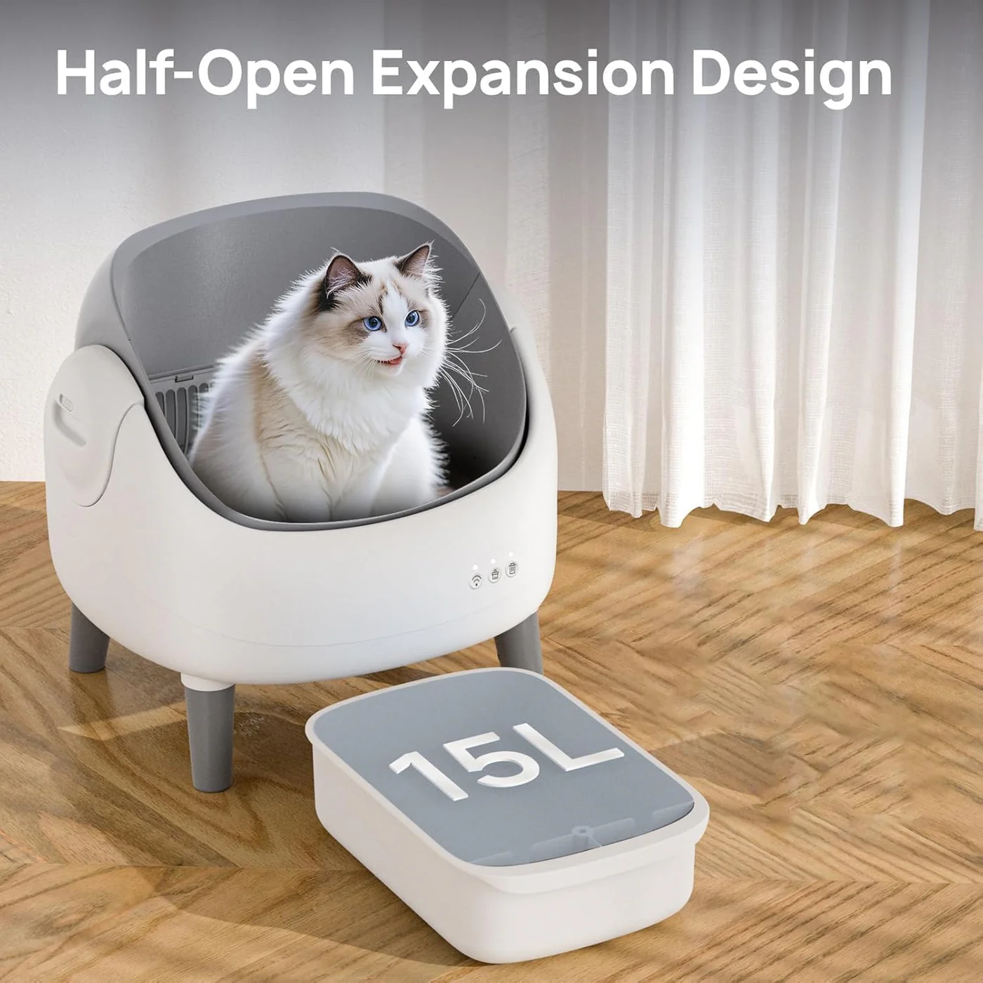 1. Automatic Waste Removal – Smart sensors detect when your cat’s done and clean up instantly, keeping the box spotless without lifting a finger.
