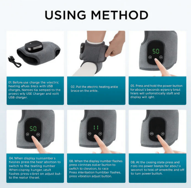 Our Electric Foot & Ankle Massager combines three powerful therapies — infrared heat, vibration massage and hot compress — into one easy-to-use brace. Slip it on, turn it on, and let the soothing warmth and gentle vibrations melt away tension and fatigue.